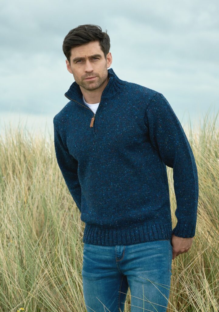 Deze trui verwachten wij vanaf september 2025 in de winkels. Met tweed schouderstukken.Donegal wol, een Ierse klassieker.Iers wollen vest komt in september 2025